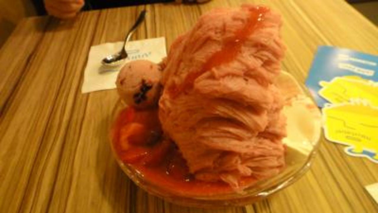 有名なマンゴーかき氷はシーズン外れていて食べられませんでしたが、いちごのかき氷をオーダー。