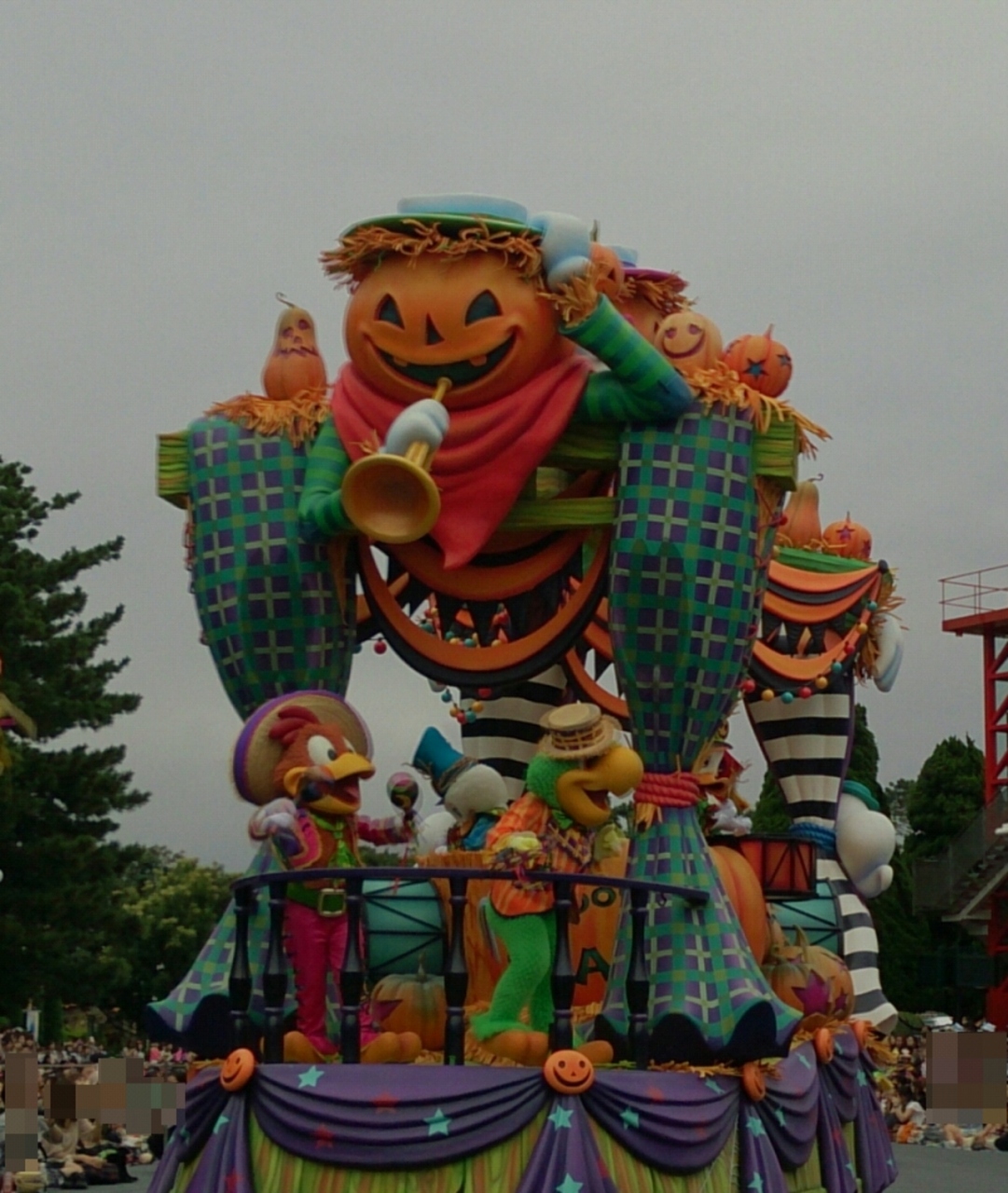 ちなみにハロウィーンのパレードのミッキーはフロートの高い位置にいますので遠くから見えますが、最前列で見るとかなり見上げる形になるのでシャッターチャンスの注意が必要。