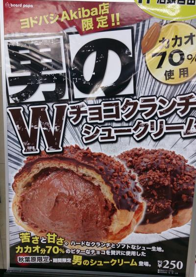 秋葉原限定という「男のWチョコクランチシュークリーム」を食べてみました。