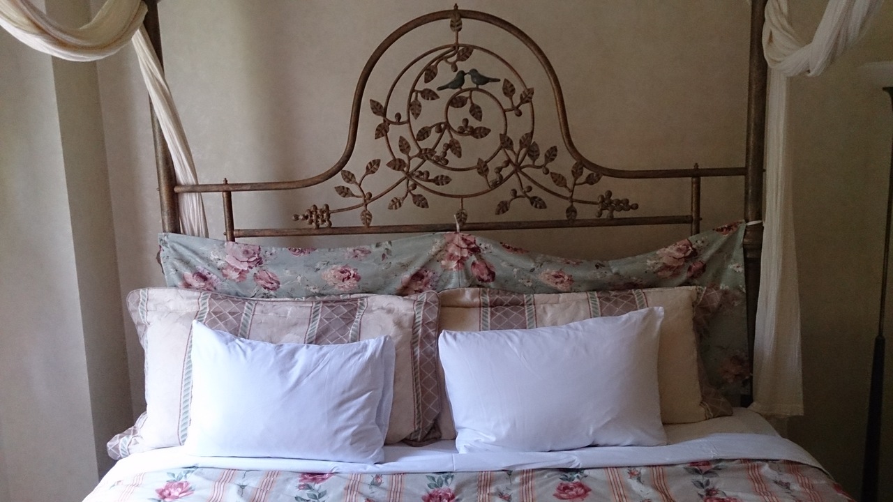 私達の泊まったガーデンスウィートの部屋はメゾネットタイプになっており、下の階はソファーやテレビでくつろげる部屋で、上の階に上がると憧れの天蓋付きベッドでゆっくり休めます。