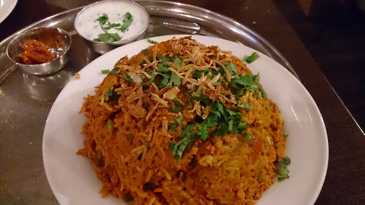 カレー以外にもチーズナンや豆のサラダなどもおいしいのですが、私が特に好きなのはマトンビリヤニ。
