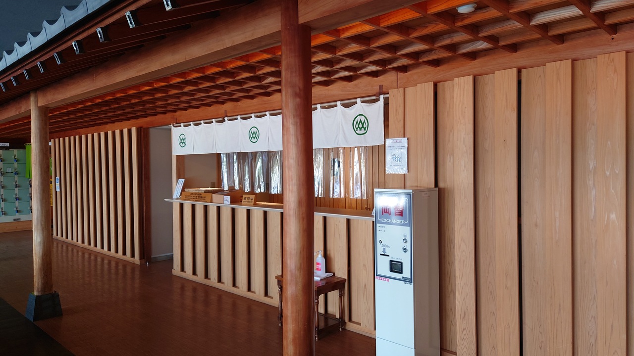 日帰り温泉に入るにはフロントで受付、支払いをしてから温泉庭園へ向かう方式です。