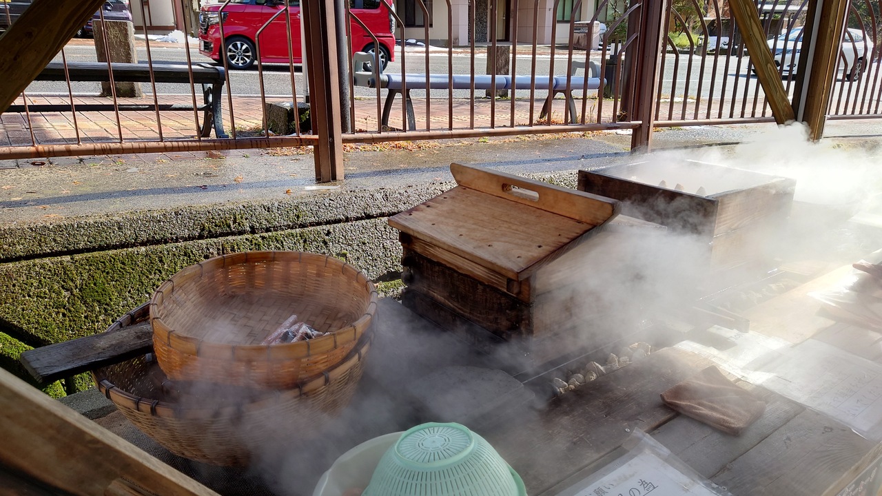温泉街で食べる温泉蒸しはおいしさ倍増です。- 旅行時期