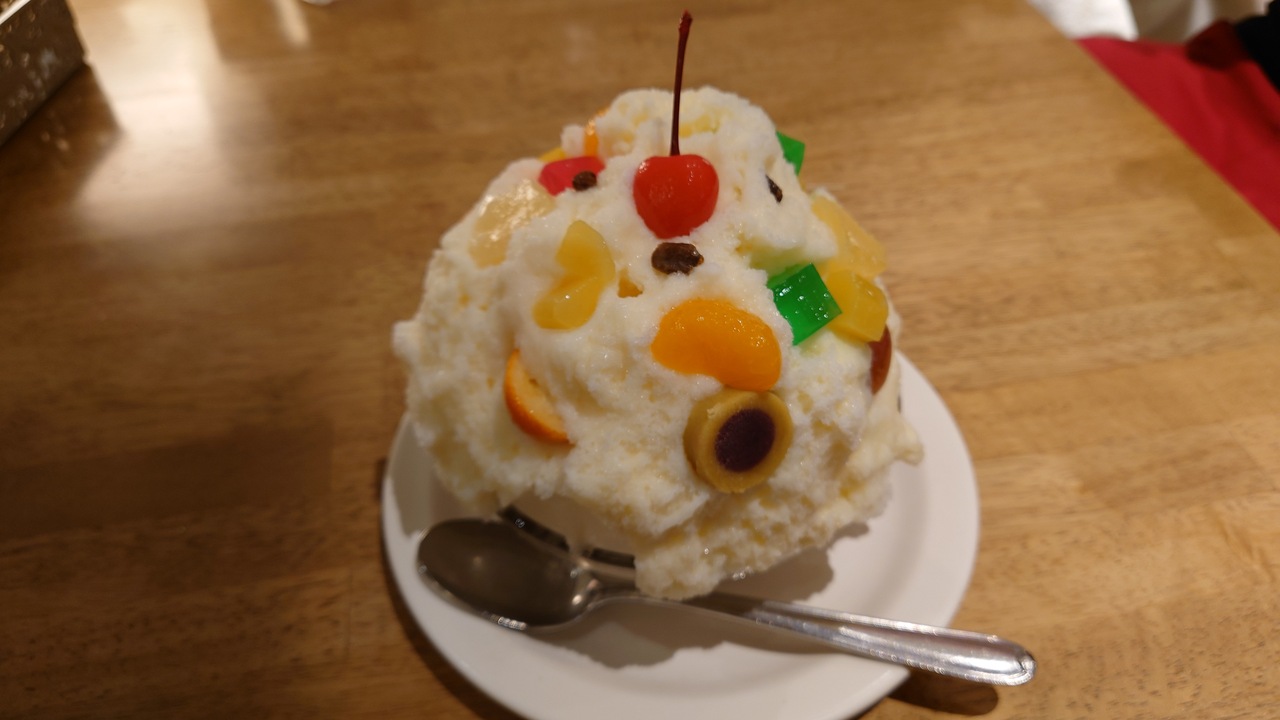 かき氷にはいろんなメニューがあって迷いましたが、私が食べたのは、しろくま。