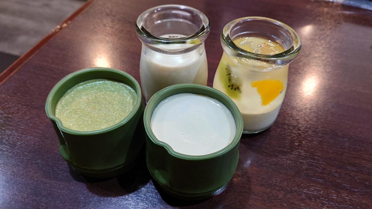 今回は修善寺プリンと抹茶プリン、フルーツプリン、ラム酒のプリンを二人でシェアして食べました。