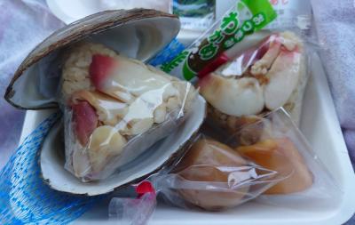 炊き込みご飯のおにぎりを食べたらホッキガイがプリっとしていて、出汁も効いておりおいしかったです。