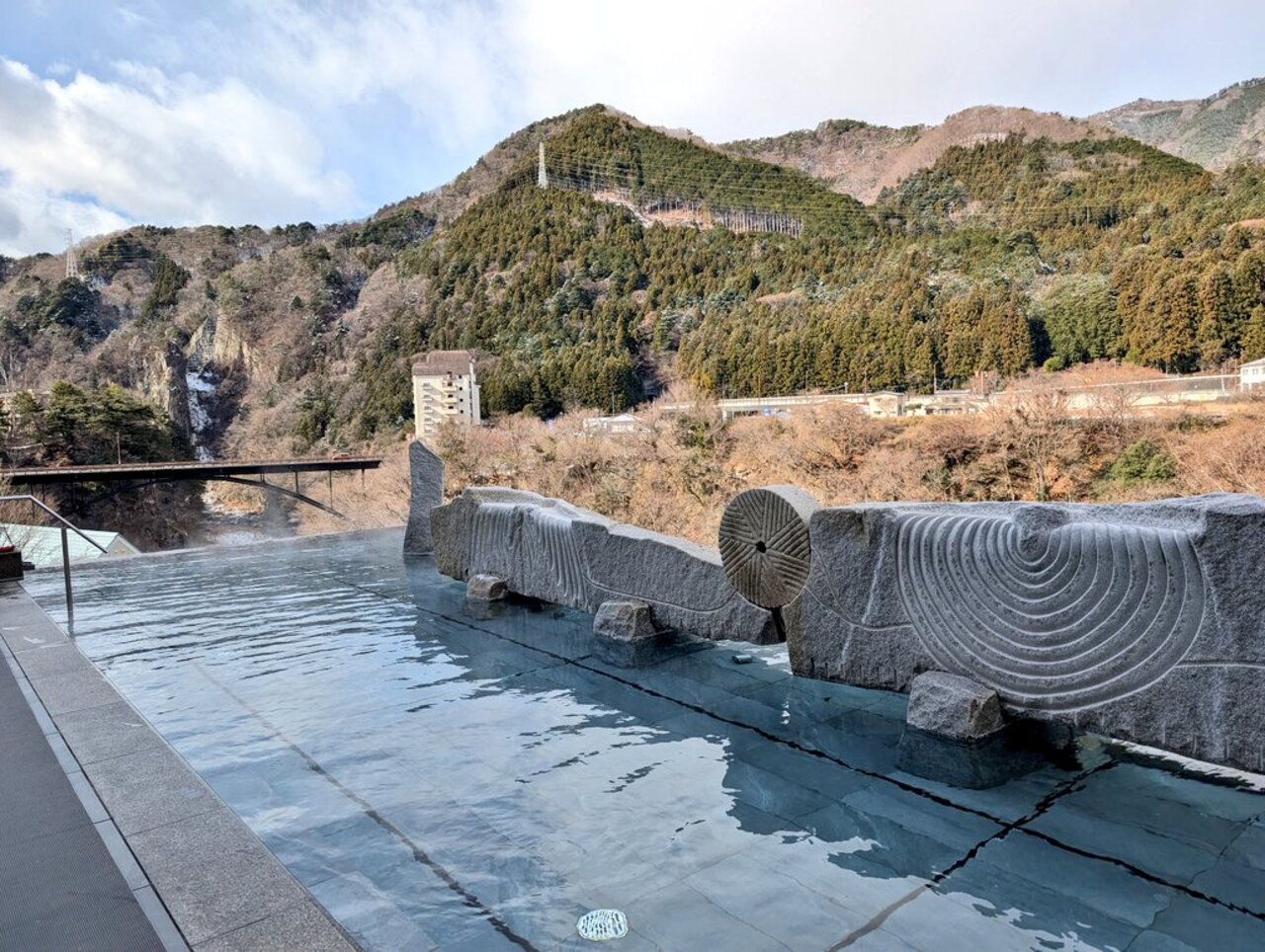 温泉に入りながら、鬼怒川渓谷と鬼怒楯岩大吊橋を眺めることができます。