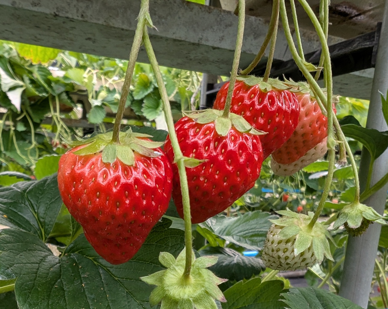 立ったままいちご狩りができます。