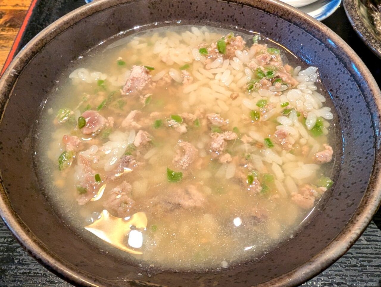 シメはあつあつの出汁をかけてお茶漬け。