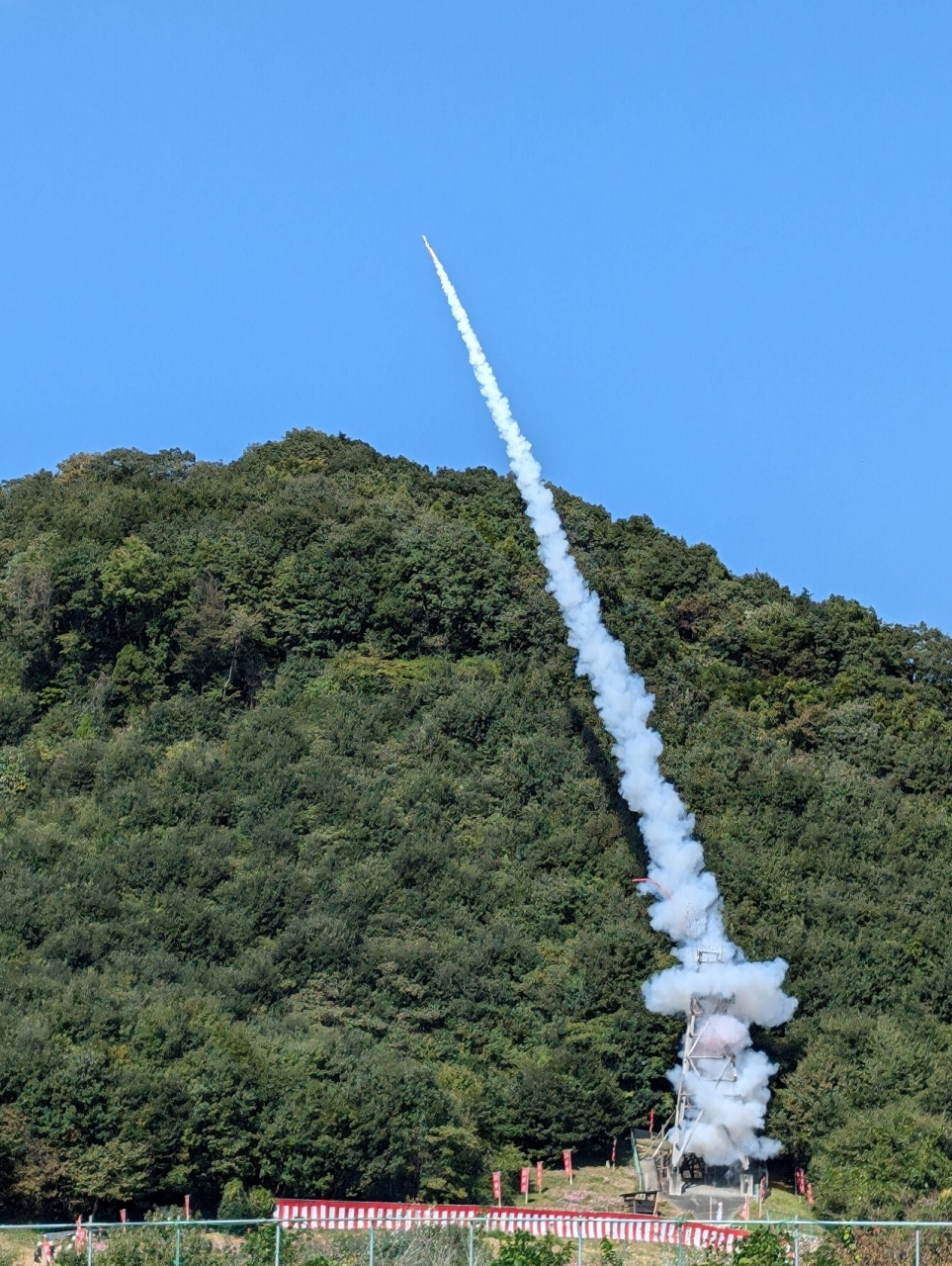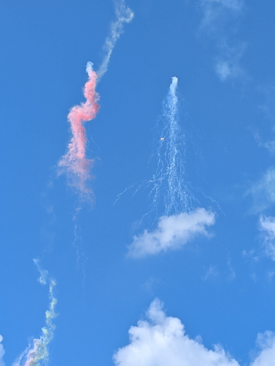龍勢によって仕掛けが違いますが、高く打ち上がってその後仕掛けの花火や色煙とともに落下傘が開いて降りてくると「成功」のようです。