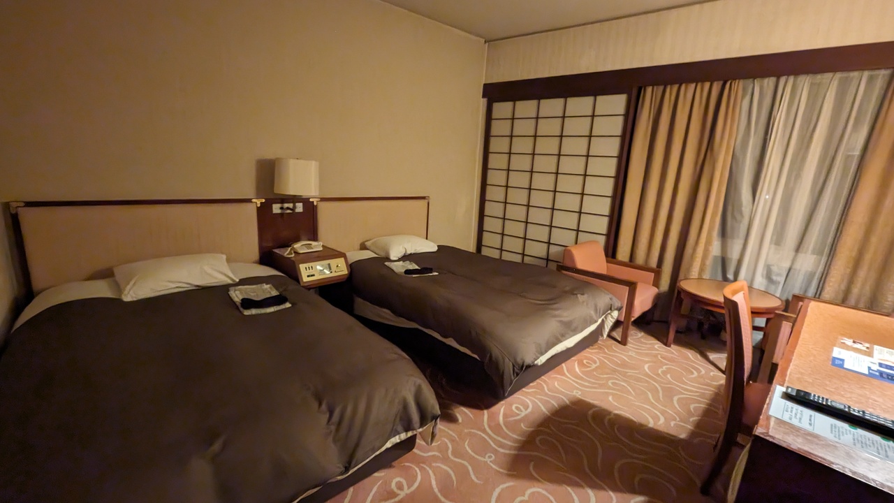 部屋は少々古さを感じましたが、狭くなく前泊するには問題ありませんでした。