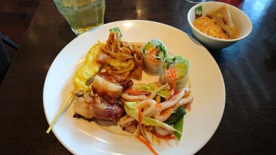 ランチブッフェでは、生春巻やサテ、サラダ、デザートなど、いろんな料理が食べられます。