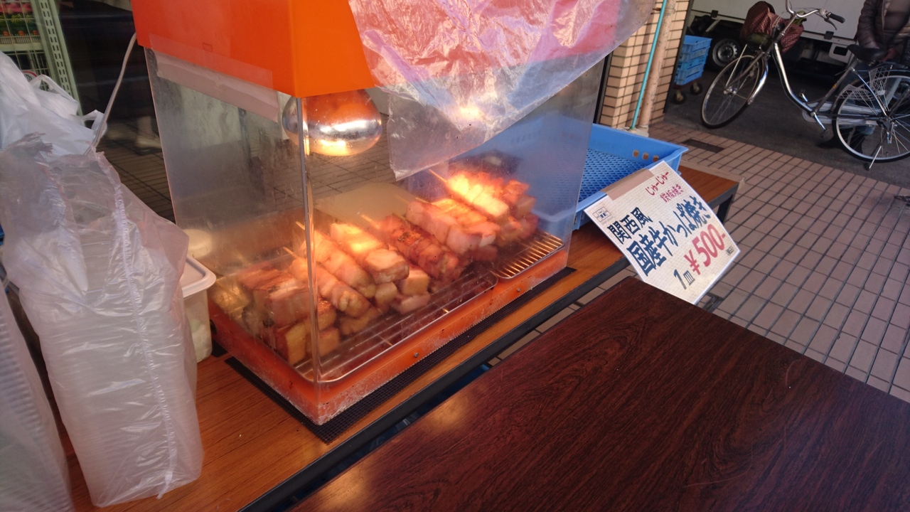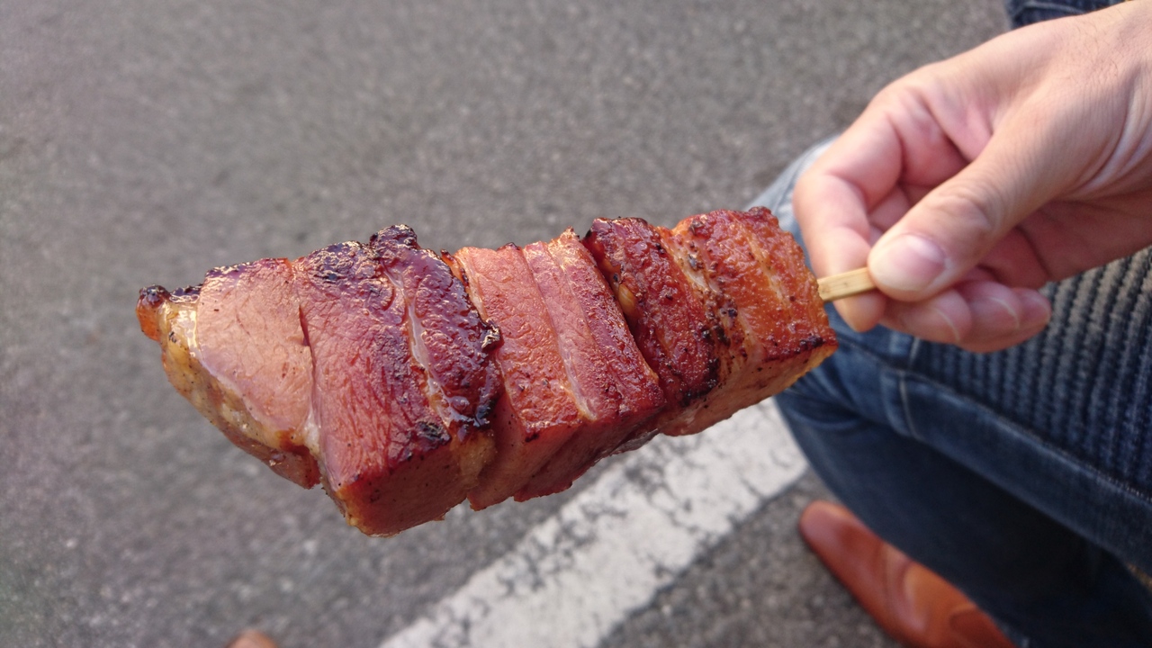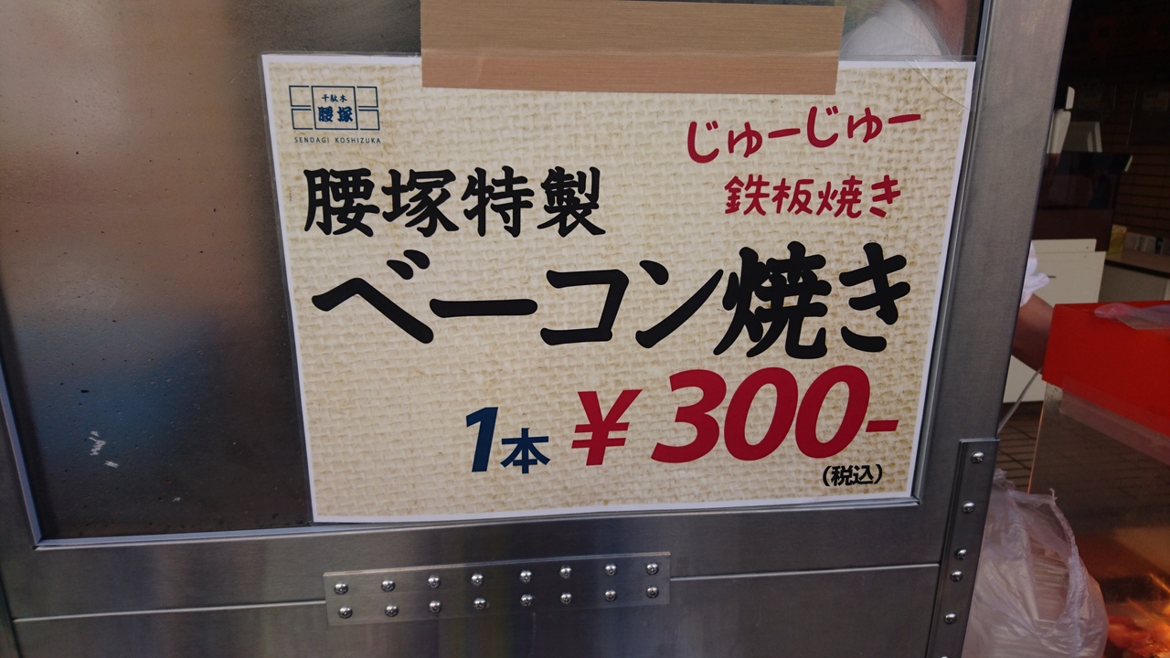 私が行った日には、店の前で腰塚特製ベーコン焼き(300円)が売っていました。