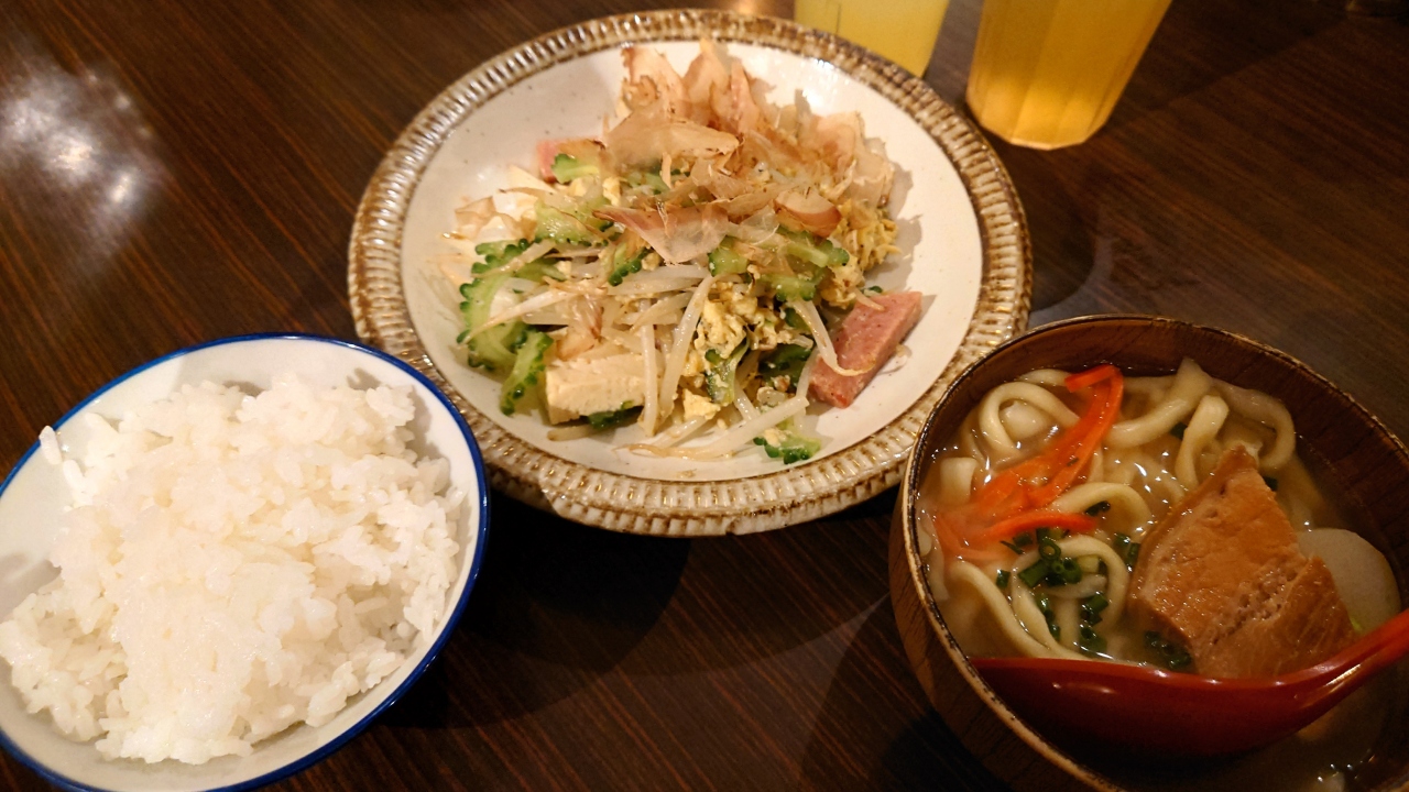 私はゴーヤチャンプルとミニ沖縄そば定食を食べました。