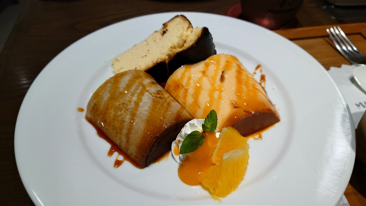 今回はおまかせ2種類プリンとバスクチーズケーキの盛り合わせを食べました。