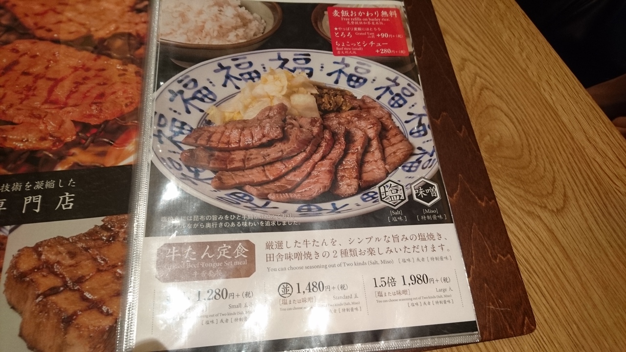 注文時に牛タンの味付けを、塩味か味噌味か聞かれます。