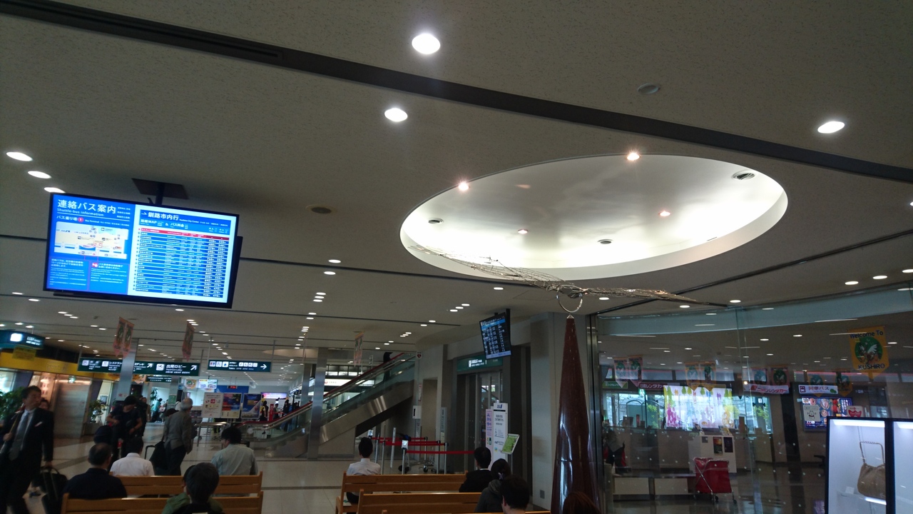 たんちょう釧路空港という名前らしく、1階のロビーには丹頂鶴の剥製が飾られていて、北海道に来たなぁという実感がわきました。
