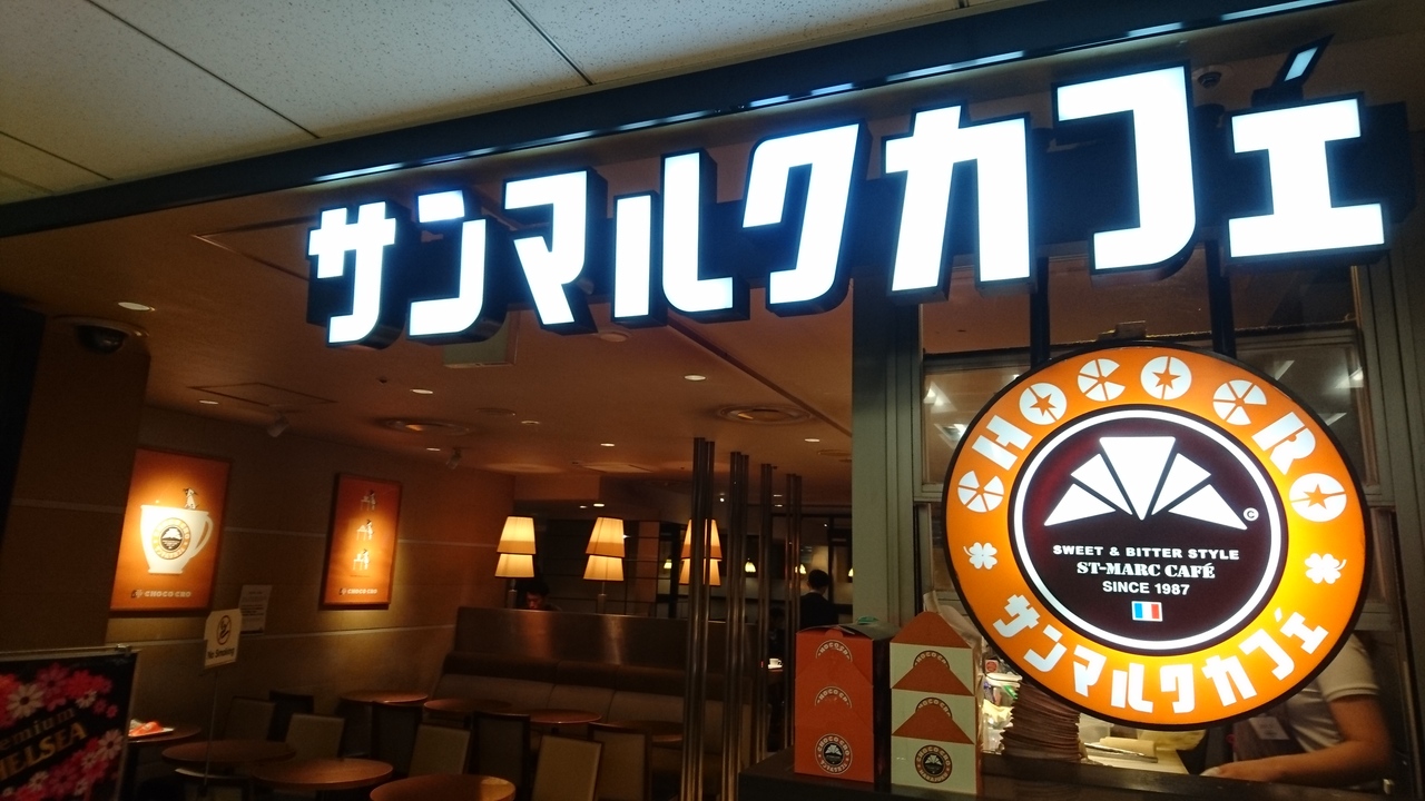 お店はあまり広くないですが、サンマルクカフェのチョコクロやコーヒーが安くておいしいので、この辺りでちょっとお茶したいときには使いやすいです。