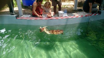 施設内、キッズルームの裏に、タートルに餌をあげたり間近に見られる小さなプールができており、餌をあげる昼の時間には子供たちに大人気でした。- 旅行時期