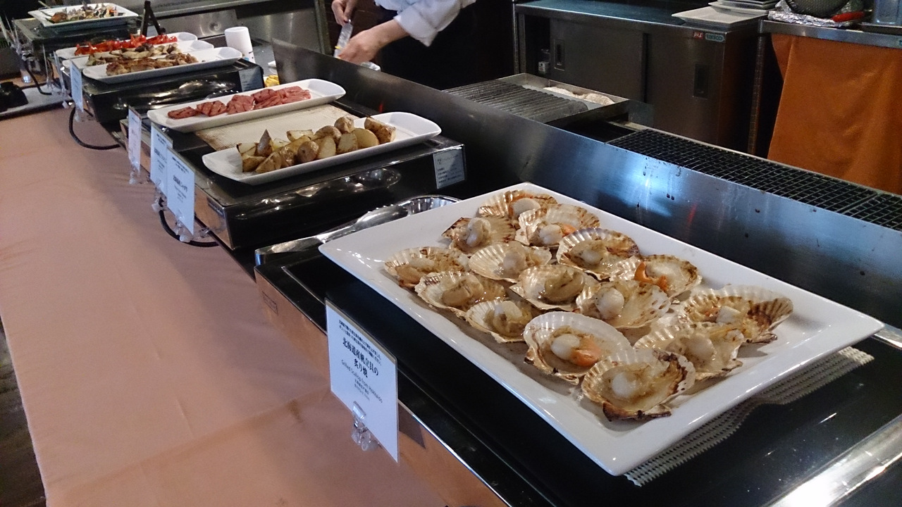 朝食バイキングは和食中心で、貝の焼き物があったりして北海道らしいメニューでした。