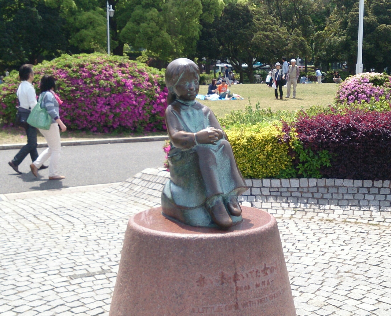 女の子像は海に向かっていて、まるで海を眺めているようでした。