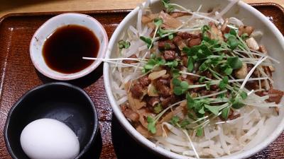 たっぷりのもやしや野菜、細かく刻まれた肉、生卵を混ぜて食べると、卵の味がマイルドでおいしかったです。