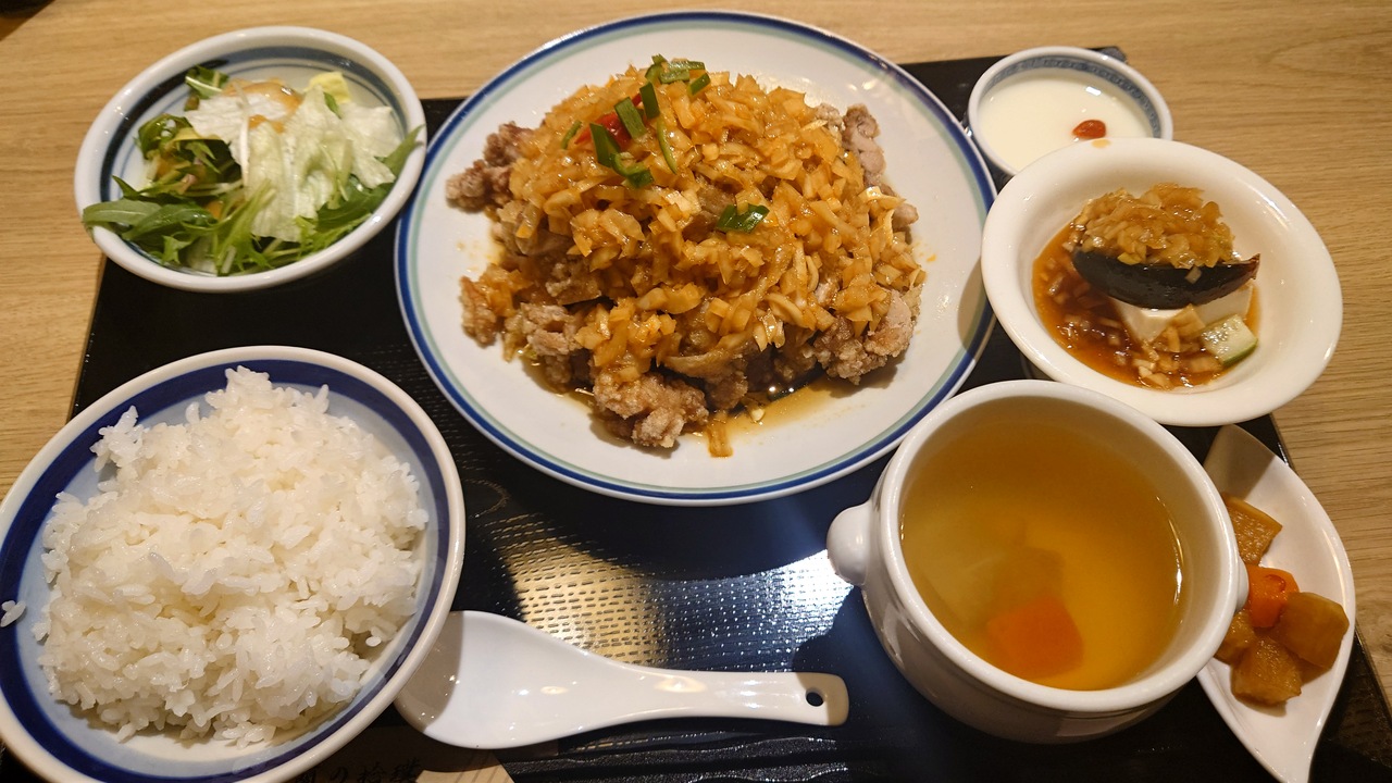 私は油淋鶏の定食にしましたが、食べやすくカットされた鶏肉にたっぷり玉ねぎとタレがかかっていてかなりのボリューム!そして、味もおいしい!