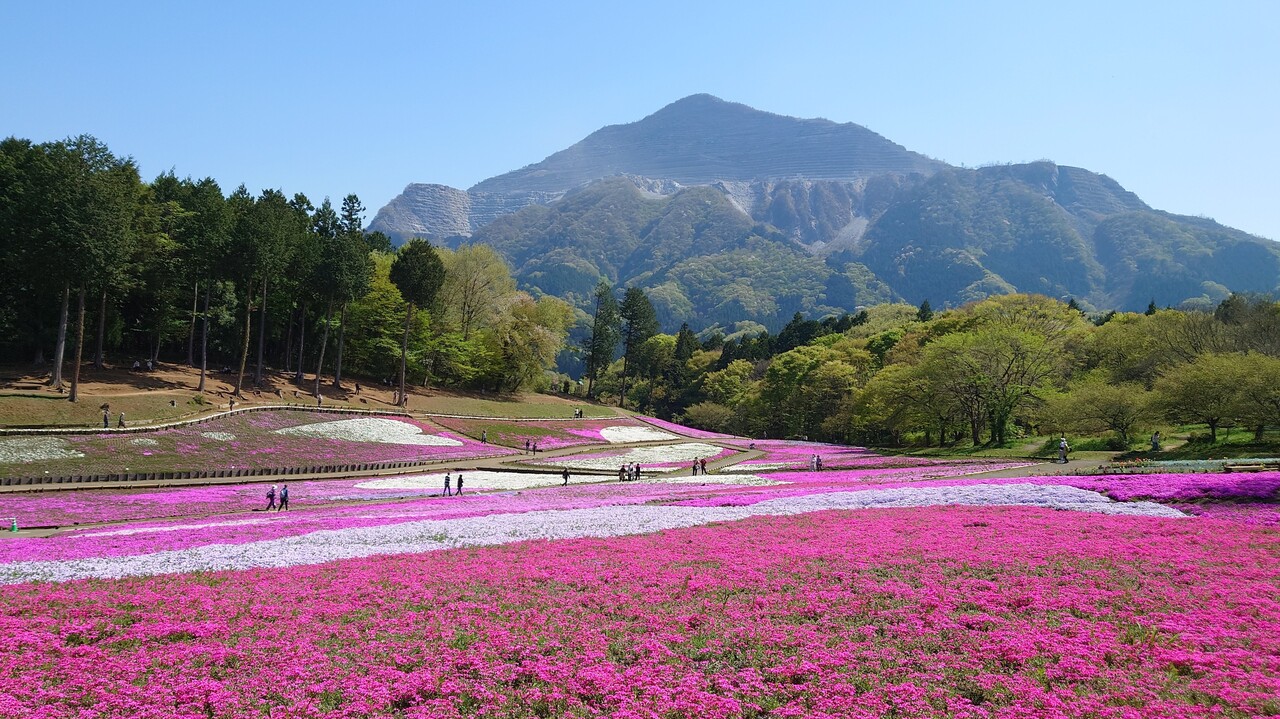 芝桜の向こうには武甲山が見えます。