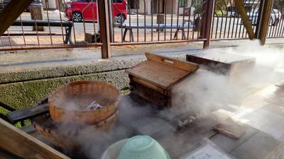 広場であつあつの蒸気が出ていておいしそうだったので、温泉蒸しを食べました。