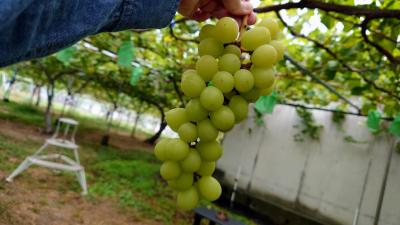ぶどう園の直売所から5分くらい歩いたところに食べ放題のシャインマスカット狩りができるぶどう園がありました。