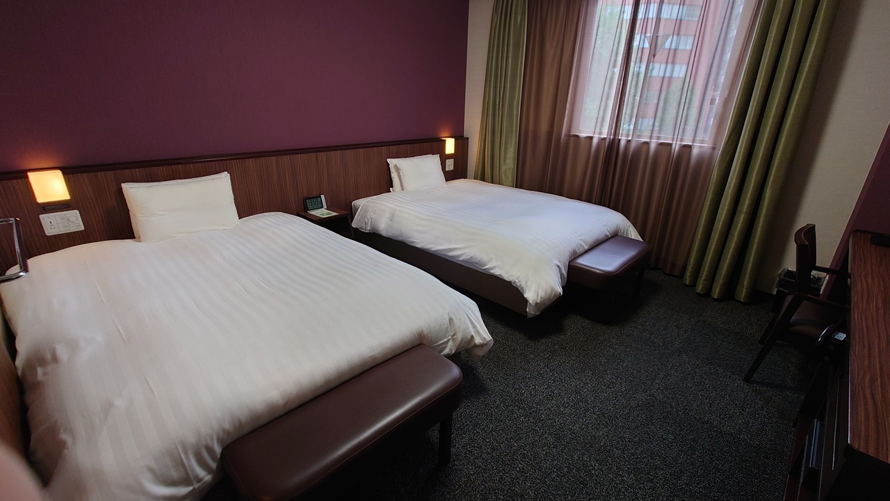 宿泊したツインルーム(約24平米)はダブルベッドが2台でゆったり快適でした。