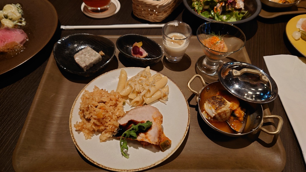 メイン料理以外はブッフェスタイルでしたが、スタッフの方が料理を取り分けてくださったり、あらかじめ料理がふた付きの小鉢に入って並んでいたりして、コロナ対策もされていました。