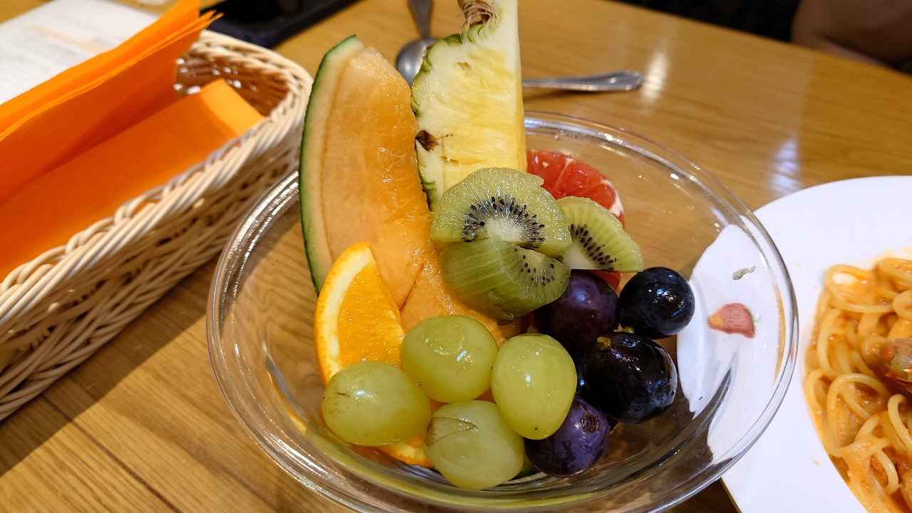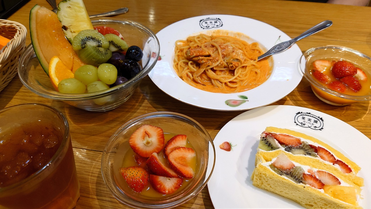 旬のフルーツやパスタなどの食事が食べ放題のコースで、たくさん食べてきました。