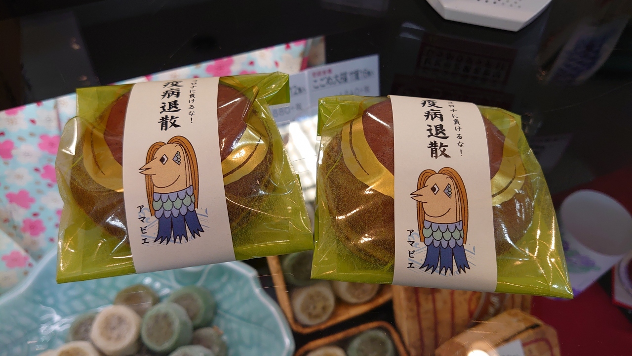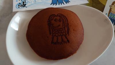 アマビエは疫病退散(コロナ撲滅祈願)の言い伝えがある妖怪ですが、こちらのどら焼きにはかわいらしくアレンジされたアマビエが焼き印されていました。