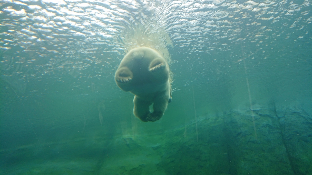 特に水中で泳ぐホッキョクグマは必見。