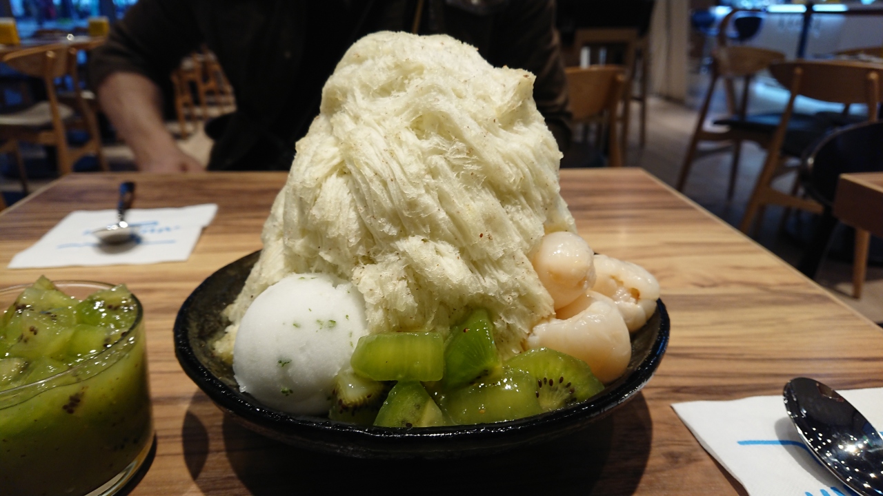 冬季限定であたたかいメニューもあったので、私達はキウイのかき氷とあったかいおしるこを注文しました。