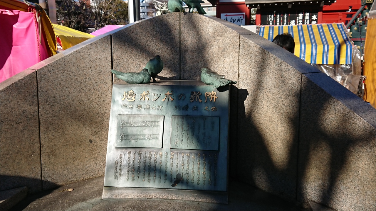 今年の三ヶ日に浅草寺へ行った時、鳩ポッポの歌碑が浅草寺境内にあることを初めて知りました。