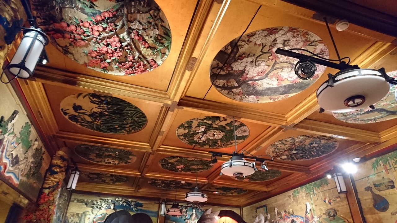 東京都指定有形文化財の百段階段にある部屋の壁や天井は、造作が細かく華やか、とても素敵でした。