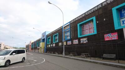 大きな建物があり、1階にはいろんなお土産や海産物が売っており、2階にはレストランが並んでいました。