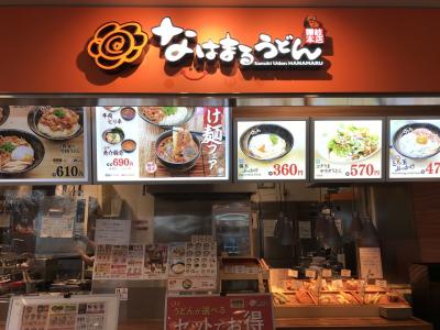 よ~く看板みてください。はなまるうどんがこちらは「なはまるうどん」になっているんです。笑