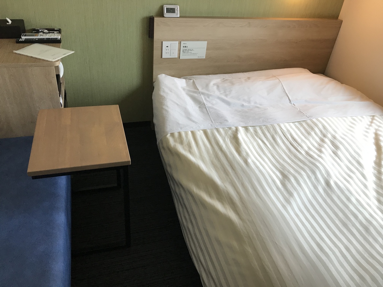 部屋もスーパーホテルさんの特徴でエコロハスを考えた造りで清潔でシンプルです。