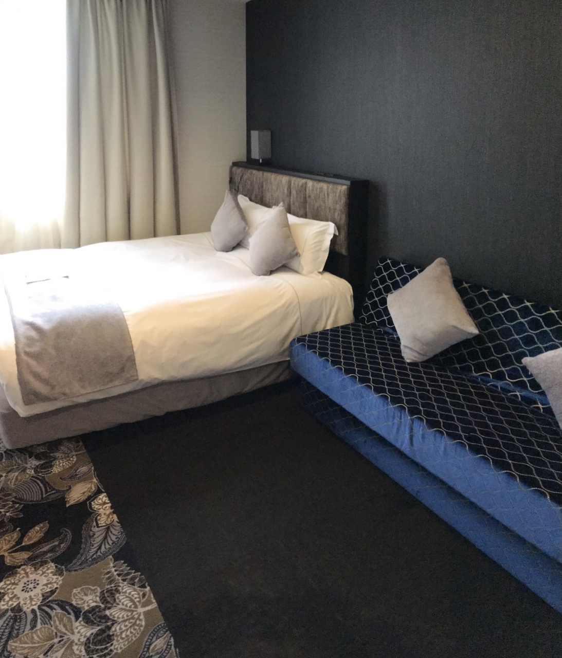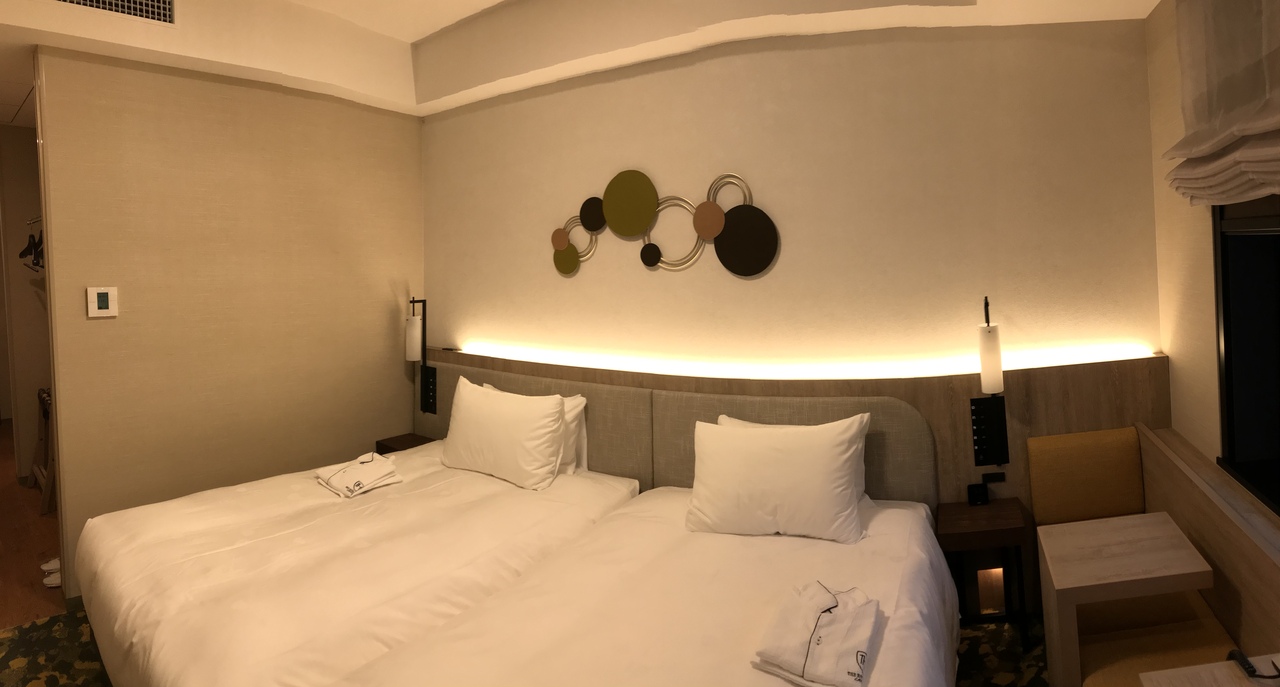 フロントもマーブル模様でドーナツ盤などが飾ってありアメリカンレトロを彷彿させます。 お部屋もベッドもスランバーランドでとても気持ちよいです。 口コミなんかで部屋は暗いと書かれてましたが ホテルってこれくらいの明るさだと感じました。 たぶんその書き込みでホテル側も追加でされたかもしれませんがライトスタンドの貸し出しもありました。 わざわざお部屋まで運んでくれました。 スタッフの方もみなさん感じよい方ばかり。 ハーバーランドやメリケンパークも徒歩圏内で ビジネスにも観光にもとても使えるホテルです。