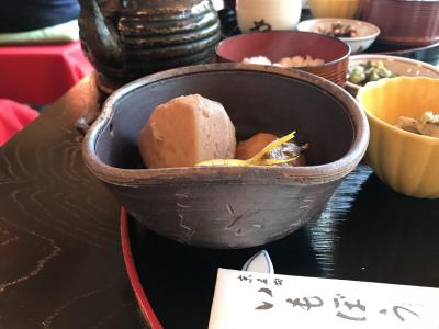 お昼の定食は目にも鮮やか。いろんなお味がお皿でいただけ至福のときでした。