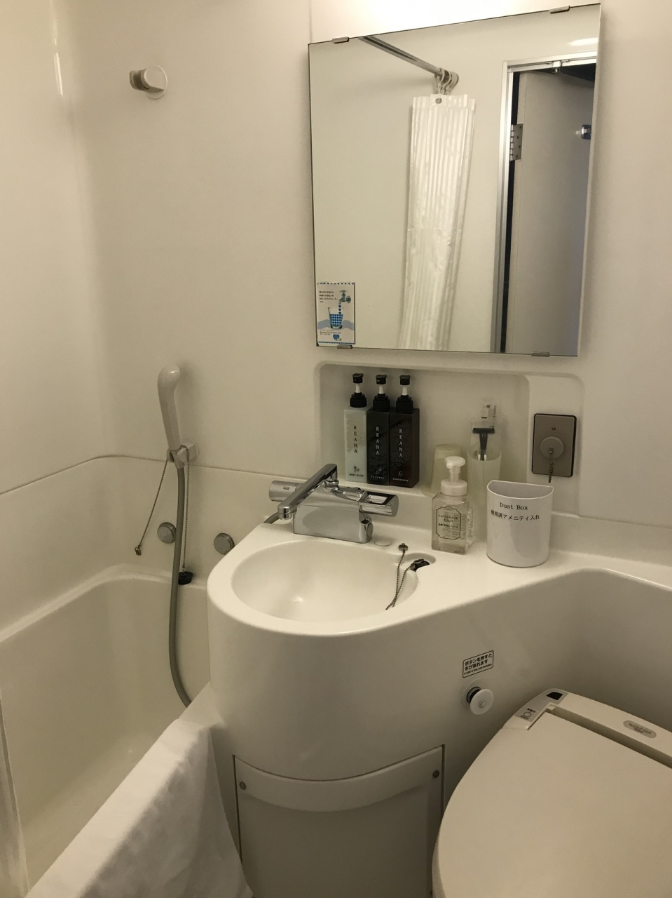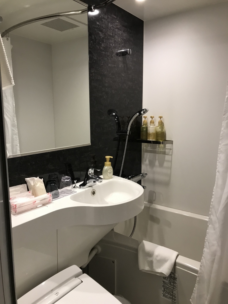 空港からは空港バスでホテルの前におろしてもらえます。商店街からは少し離れてますがその分夜はとても静かです。11月にオープンしたという近代的バスターミナルもすぐ近くです。部屋は窓なしタイプもあるので苦手な人は確認要です。室内はシンプルなつくりです。ケトルと必要最低限のアメニティはおいてありました。3階に大浴場があります。夜中1時に一旦閉まるので夜遊びしたらちょっと、間に合いません。朝ははやくからはいれるので朝にはいるのもリフレッシュできてよかったです。