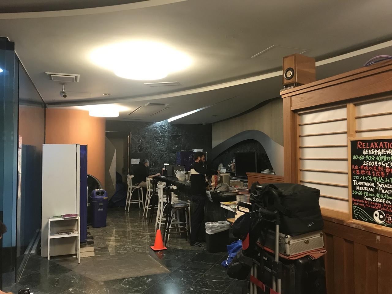 阪急電鉄・京都烏丸6番出口より徒歩5分ほどです。フロント横には夜10時ころまでコーヒーマシンでドリンクがセルフでいただけます。またワンパッケージ化粧水やパック・シェービングクリームなどがいただけるアメニティバーもありました。