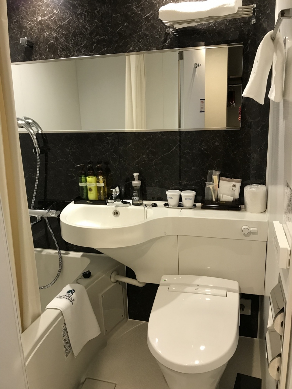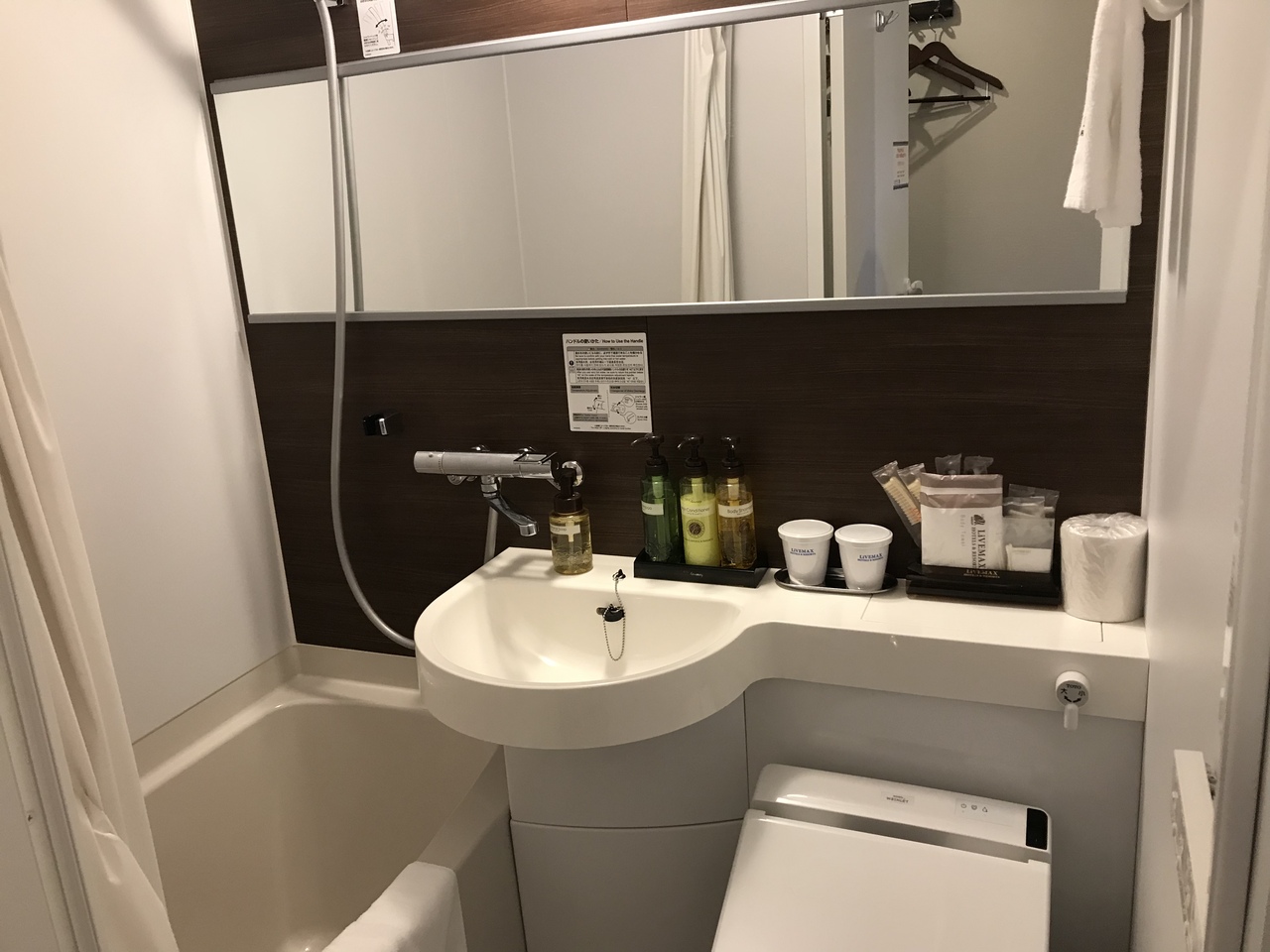 JR広島駅から徒歩10分以内で立地はよかったです。駅からホテルまでにコンビニや近くに大型スーパーマーケットもありました。ウエルカムドリンクでミネラルウォーター1本サービスもありました。室内は至ってシンプルで、アメニティもボディタオルなどもあるので揃ってるほうだと感じました。屋上に天然温泉もあり旅の疲れが取れます。室内のバスタオルのほかに温泉用のバッグと小タオルが温泉用に用意されているのも親切でした。