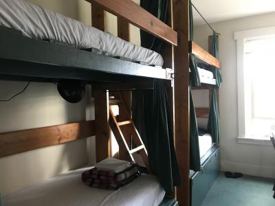 カーテンあるのでプライバシーあり。シャワーもフロアーが全部使っていたらほかのフロアー行けば待たずに使えました。朝食もセルフで卵焼けたり、シリアル、食パン、ベーグルなどと食べ放題でした。ホステルの真ん前がスタバ1号店で立地もばっちりです。- 旅行時期