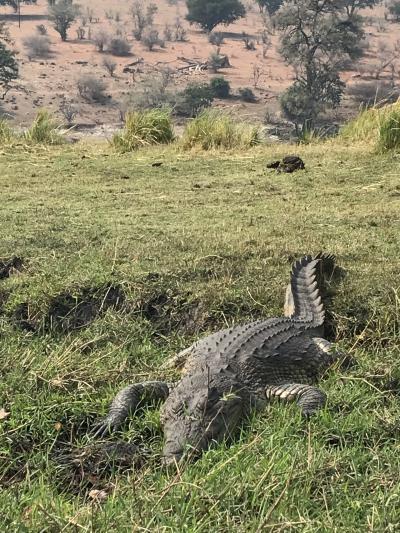 ボツワナに1日入国です。午前中はボートサファリでワニやカバと遭遇。