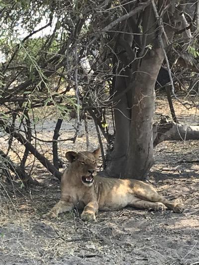 象やキリン。チョベにはライオンがいないと思っていたのに木陰で涼んでる子供のライオンが見れて感激でした。象は世界一多いとのことで象がめっちゃ居て、普通に家族の象が目の前を通過したりでとても楽しいサファリでした。- 旅行時期