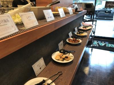 リブマックスさんではチェックイン時に毎回ミネラルウォーターのボトルサービスがあるのがうれしいです。部屋はベッドだけという広さですが大阪市内中心部という立地を考えれば問題なしの広さだと思います。テーブルにケトルと電子レンジがありました。アメニティもボディタオルやコットン・綿棒などもあり揃っているほうだと思いました。朝食は1階のカフェで9時までの入店、9時半までには退店するみたいです。メニューの中のあごだしでいただくお茶漬けが珍しかったです。
